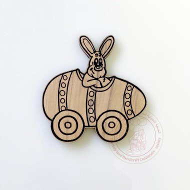 Olive Wood Car & Rabbit Easter Ornament Laser Cut