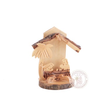 This Nativity creche depicts the Holy Family in the Bethlehem manger, and is one of our more slender, simplistic versions. It is designed as a Christmas tree ornament or a freestanding creche, and is made in Bethlehem with Holy Land olive wood.