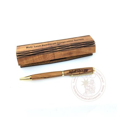This pen and box set is made of olive wood by Bethlehem artisans.