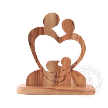 This display piece features an abstract depiction of the Holy Family, and was made with olive wood by Bethlehem artisans.