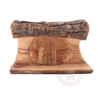 This Nativity creche depicts the Holy Family in the Bethlehem manger in simplistic, rough style. Made by Bethlehem artisans.