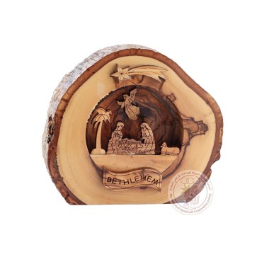 Nativity Creche - Laser Cut Inlay on Olive Wood Tree Core