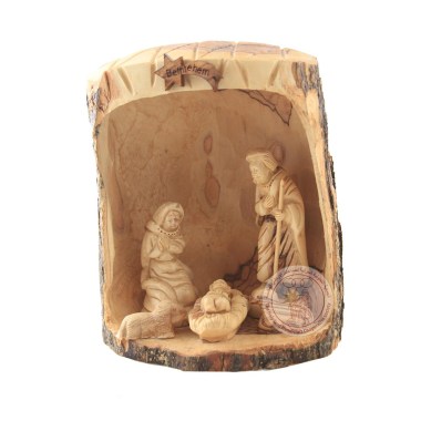 Holy Family in Grotto - Version 2, Olive Wood Trunk Inlay