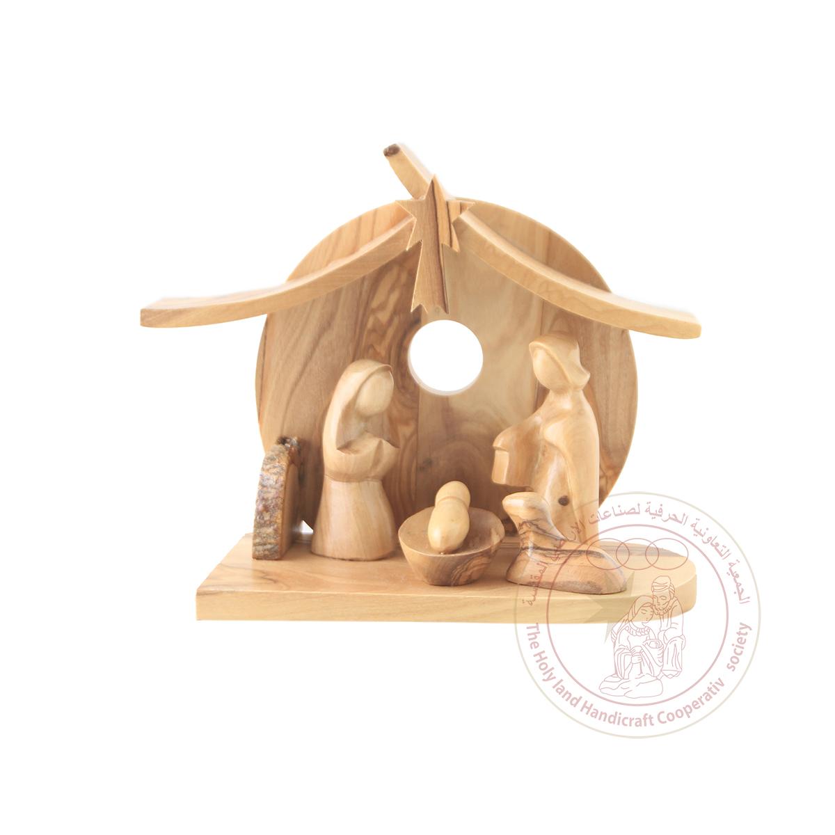 Nativity Scene w/Circular Manger- Olive Wood, Smooth Plain Figures