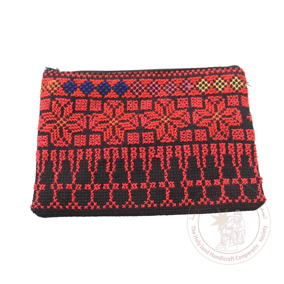 Embroidery hand-stitched change purse on- ides Zipper closure red and black designs