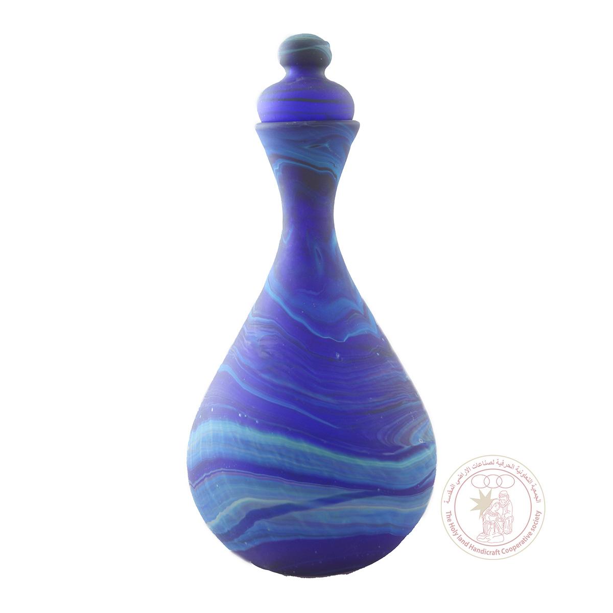 This 22 CM traditional bottle is made of dark blue swirled-style Phoenician glass. It was made by artisans from Hebron.