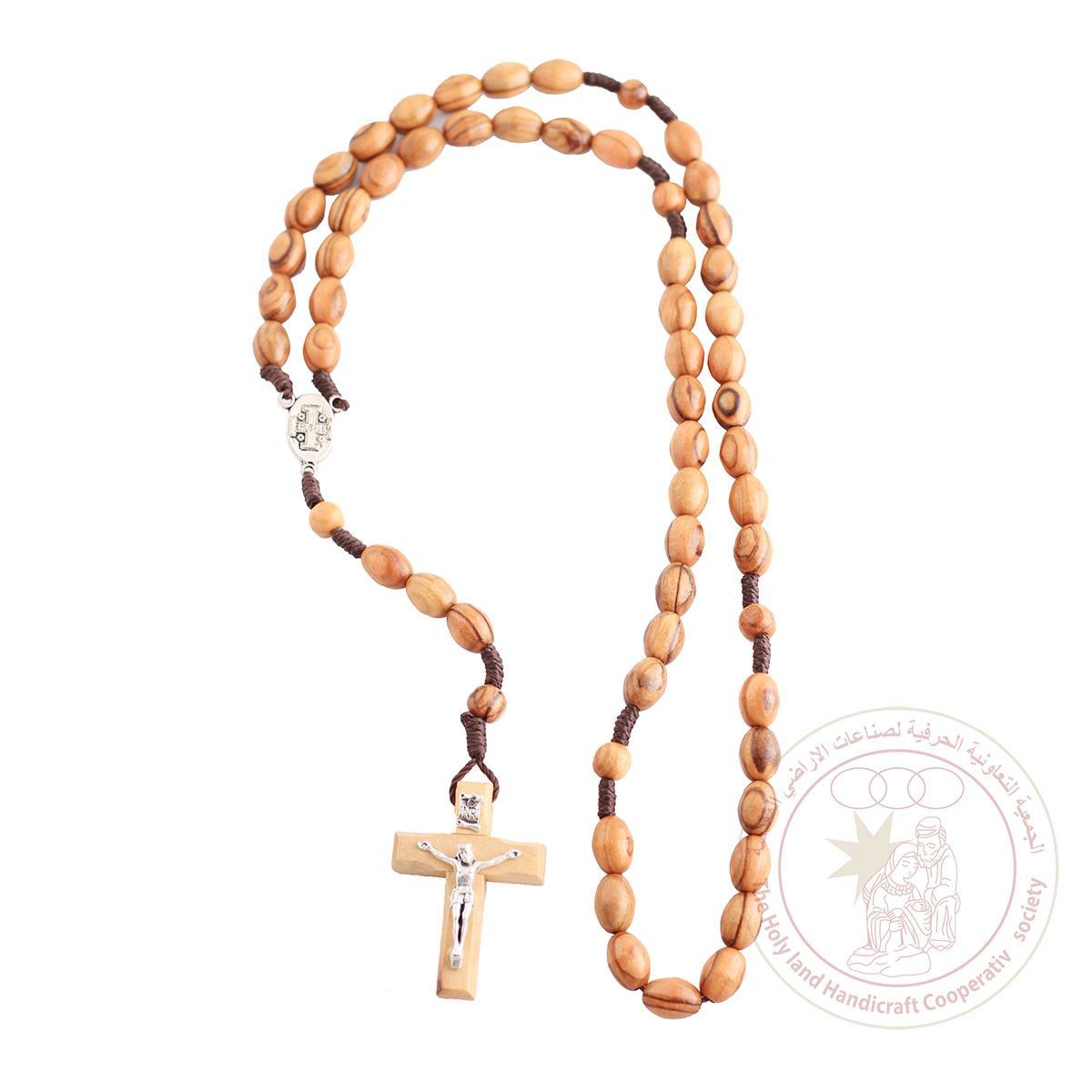 Authentic Olive Wood Rosary with 10mm oval beads, cross with crucifix