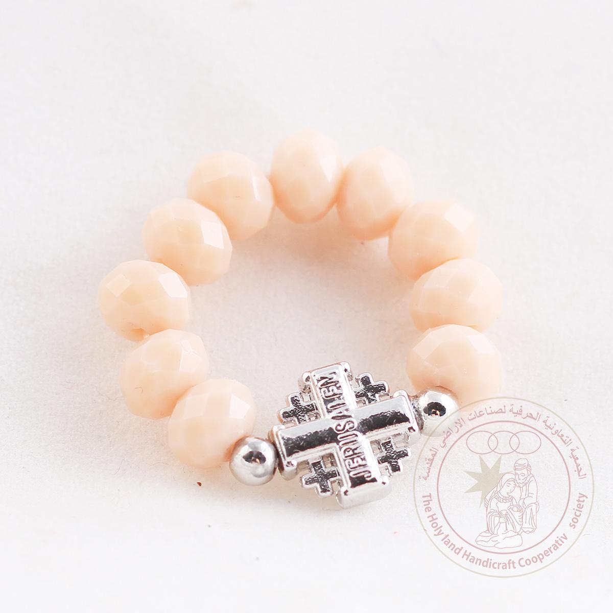 Beige crystal beads finger rosary w/ Jerusalem cross