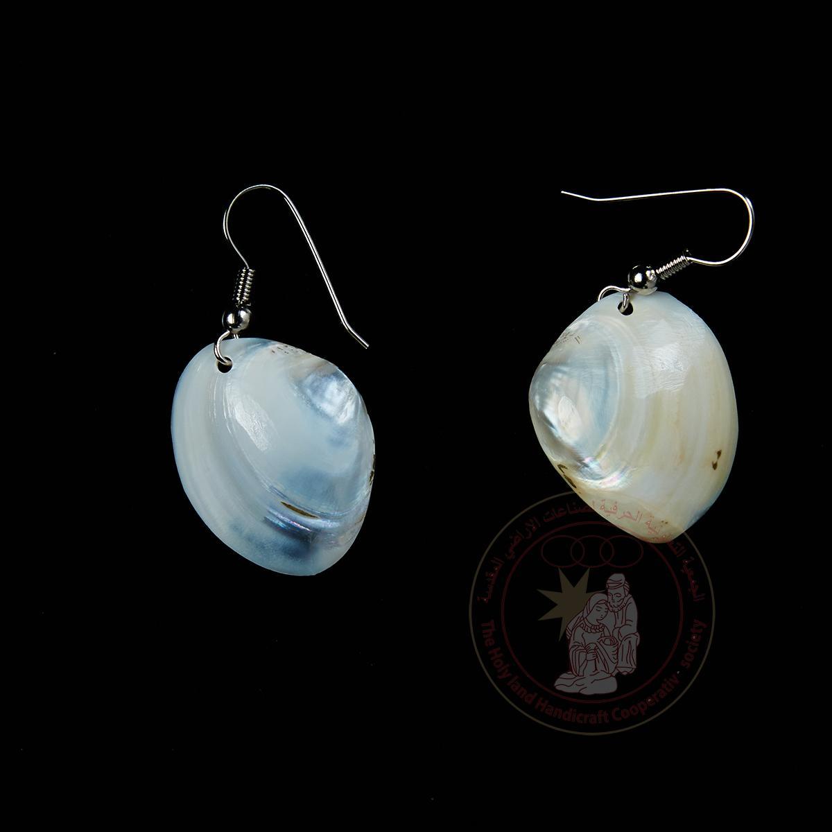 This set of mother of pearl earrings are designed in the shape of seashells, and were made by Bethlehem artisans.