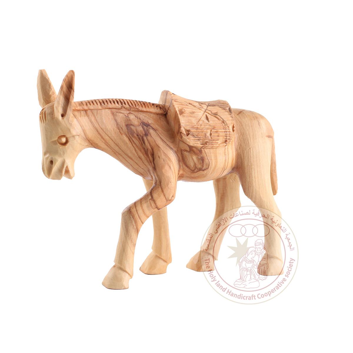This detailed donkey figurine is made of olive wood by Bethlehem artisans.