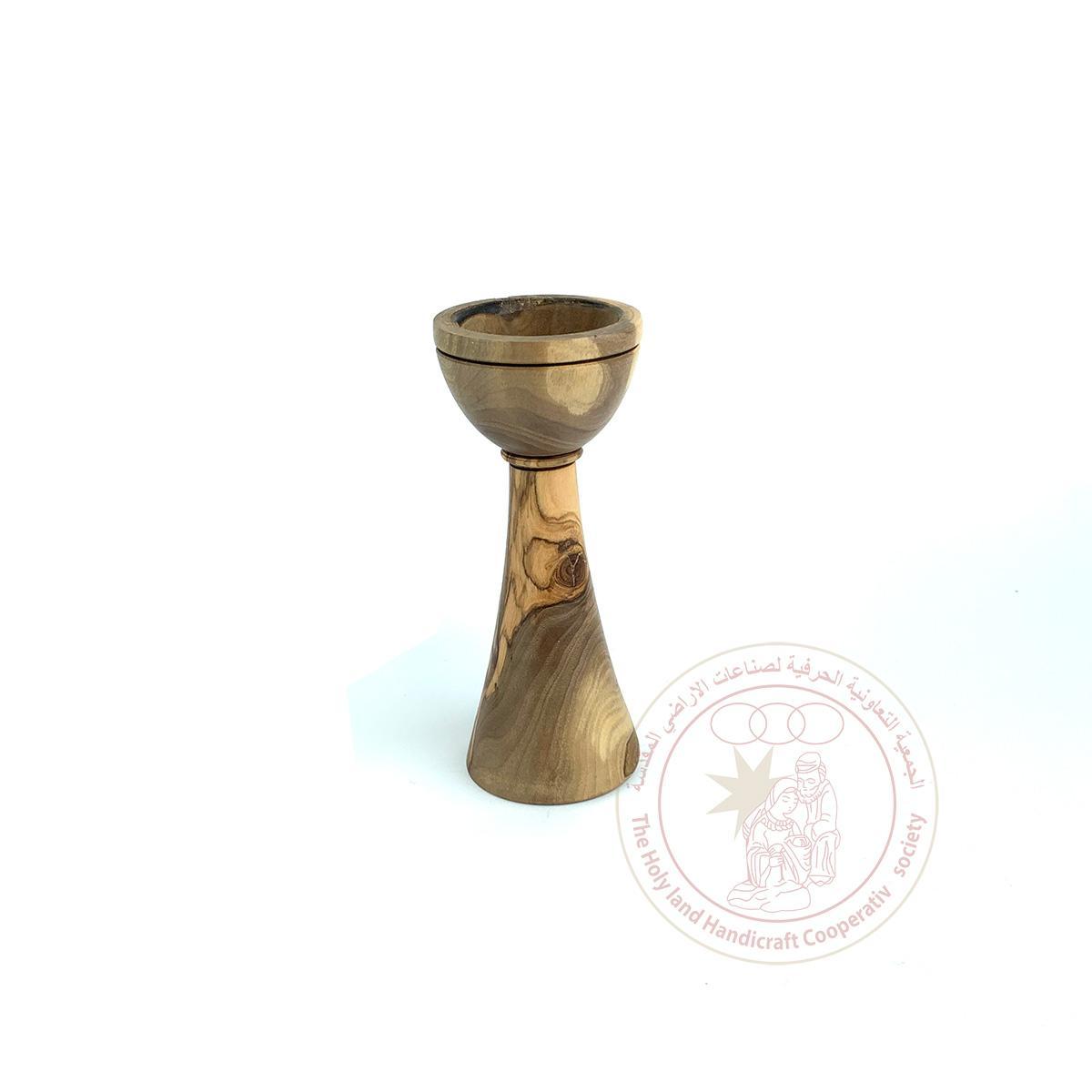 This small candle holder is made of olive wood by Bethlehem artisans.
