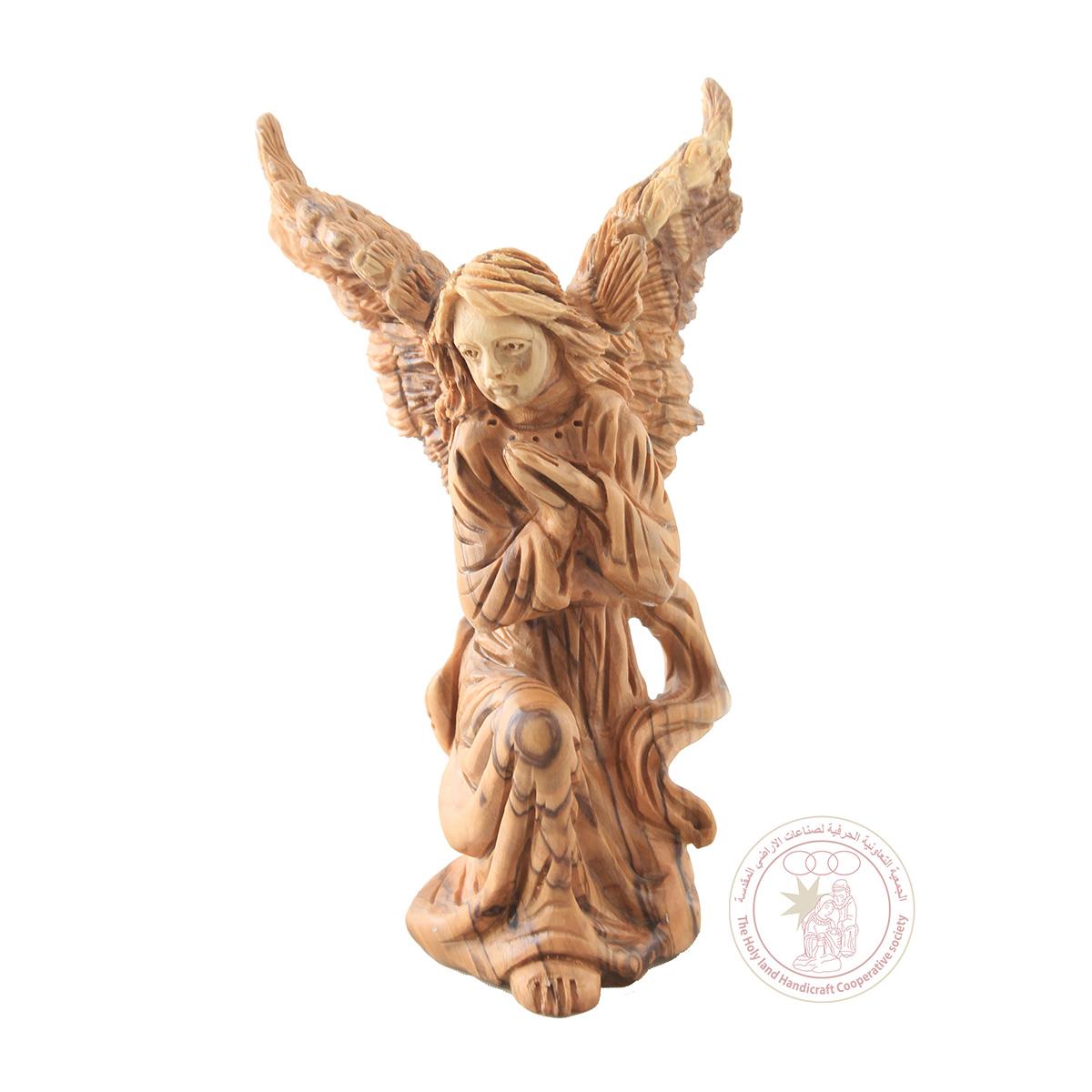 This carved statue depicts a kneeling angel. It was carved in Bethlehem from Holy Land olive wood.