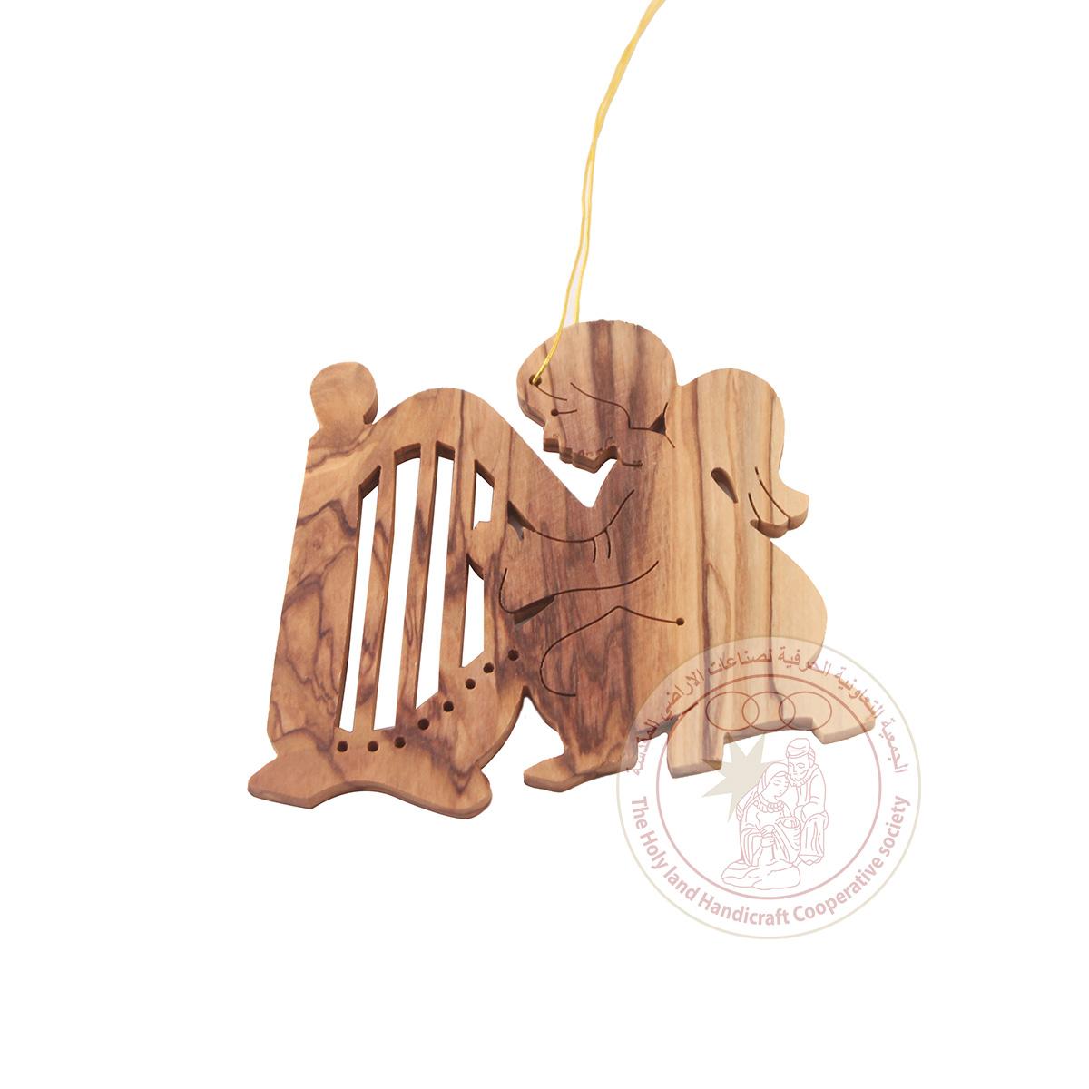 Olive Wood Angel Playing with guitar