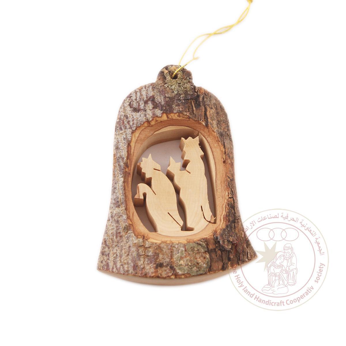 Olive Wood bell Ornament, with natural wood bark, wise men