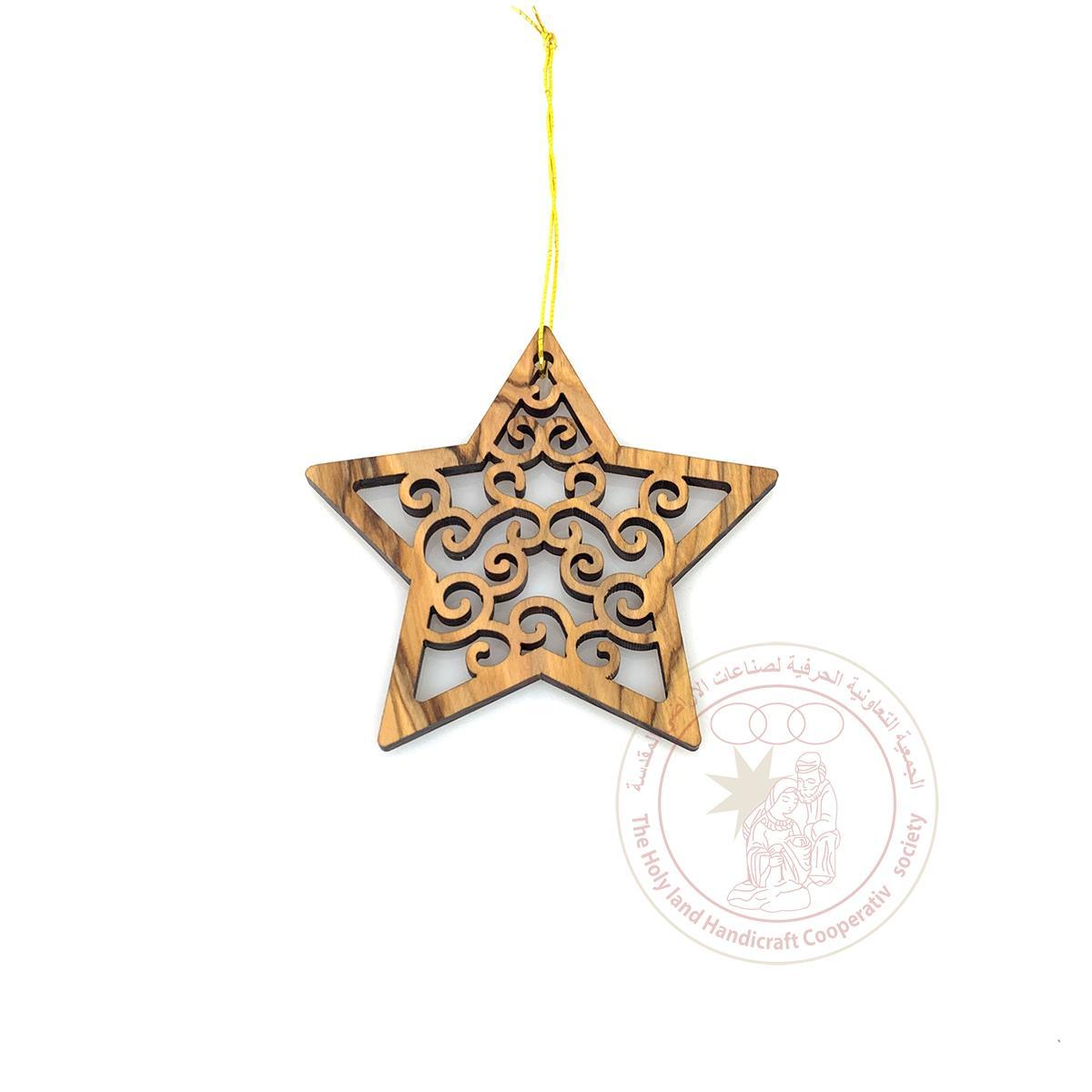 Olive Wood Laser Ornament star shape