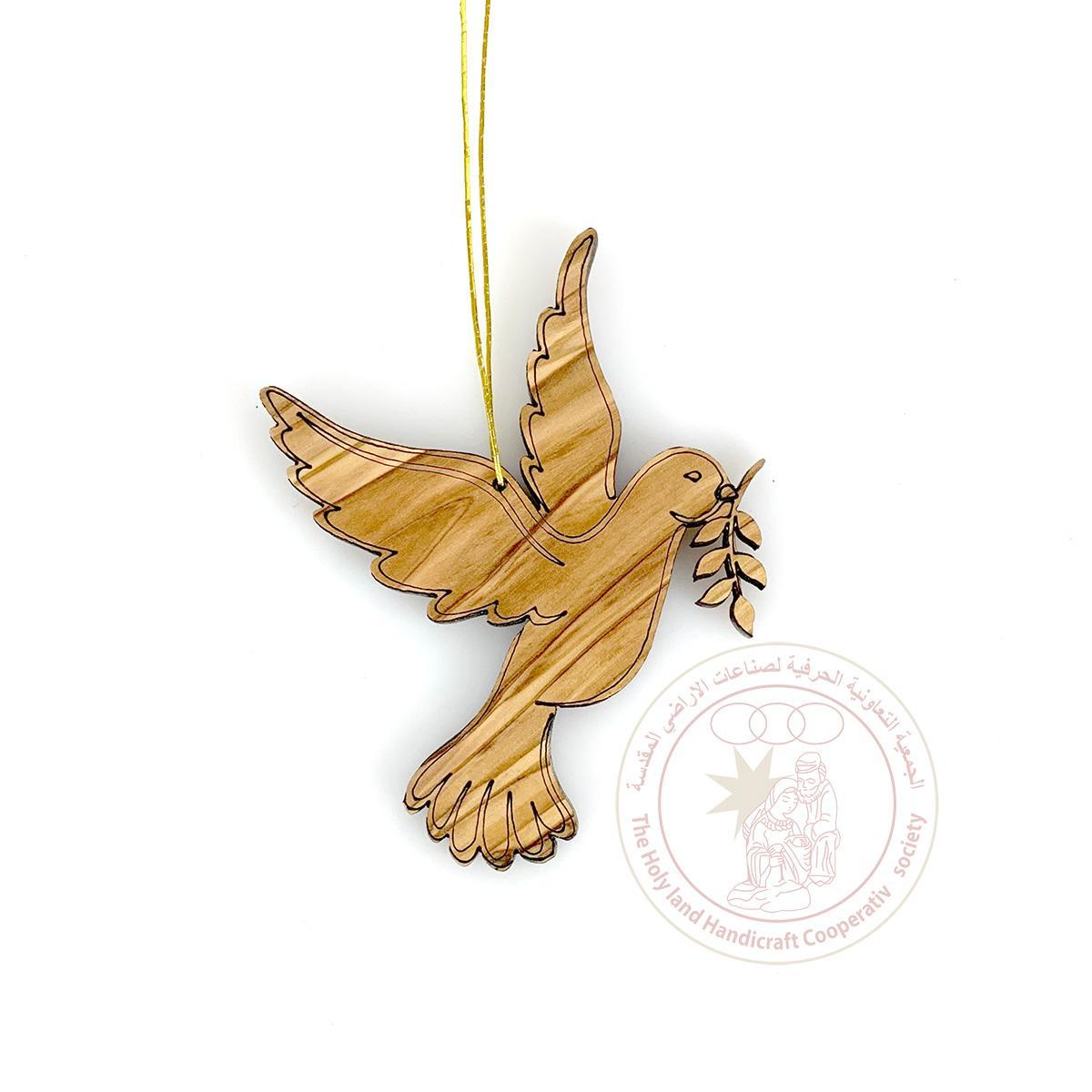 This is a Nativity ornament, depicting the Dove of Peace, made using laser cut technology. Made by Bethlehem artisans.
