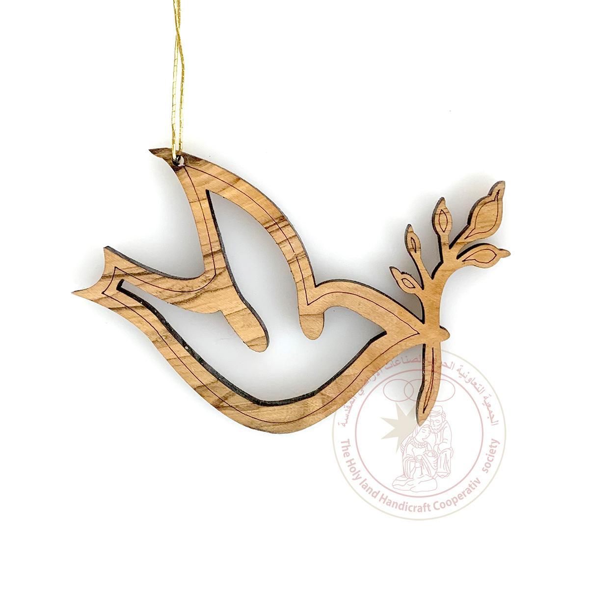 This is a Nativity ornament, depicting the Dove of Peace, made using laser cut technology. Made by Bethlehem artisans.