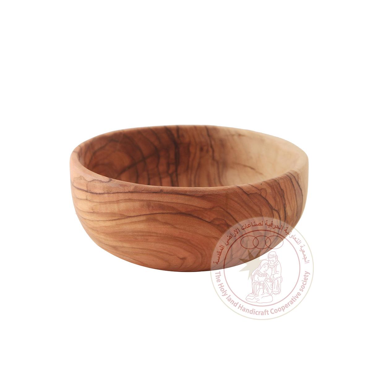 This round-shaped deep bowl is made of olive wood by Bethlehem artisans.