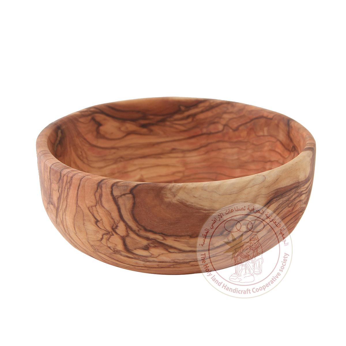 This round-shaped deep bowl is made of olive wood by Bethlehem artisans.