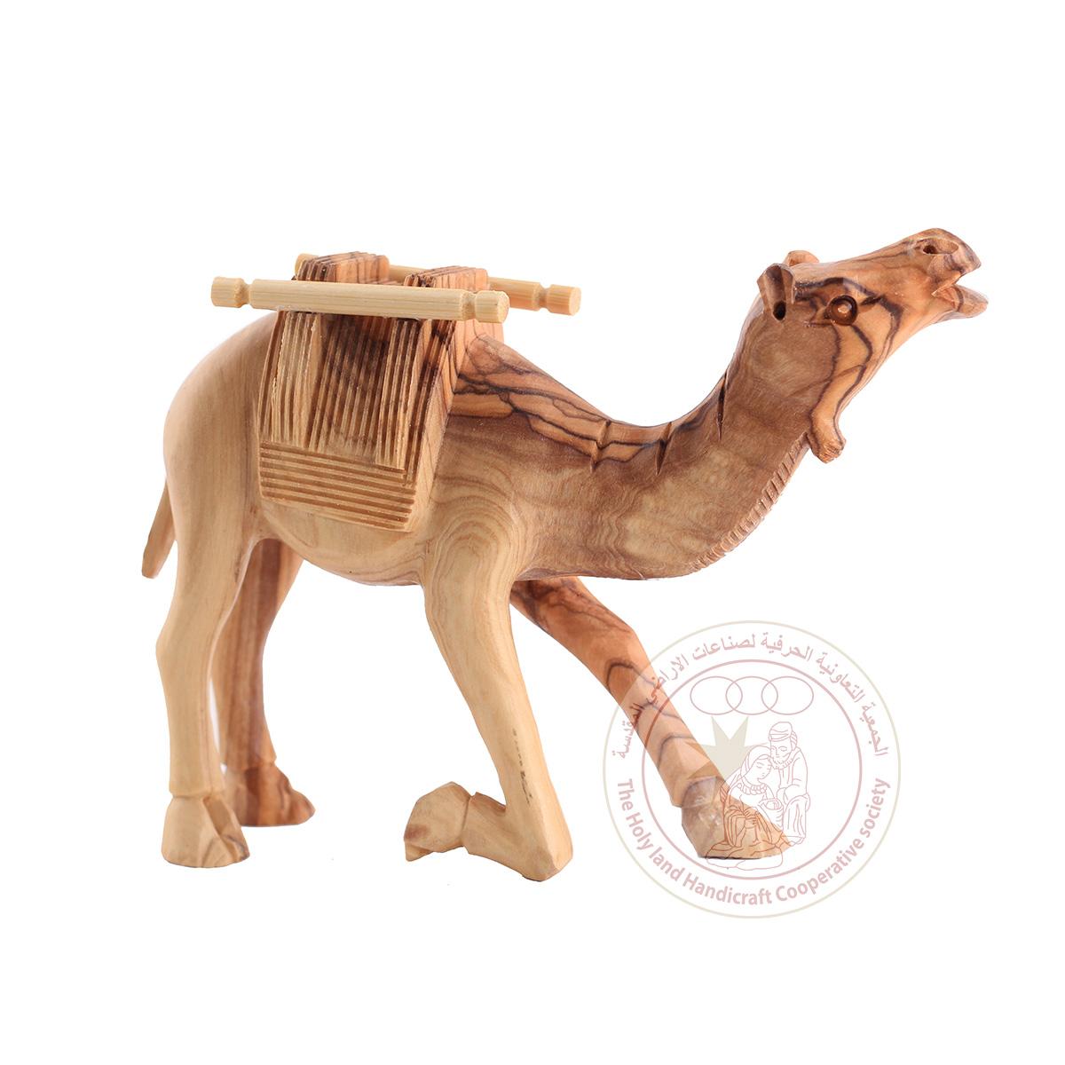 This figurine of a resting camel is made of olive wood by Bethlehem artisans.