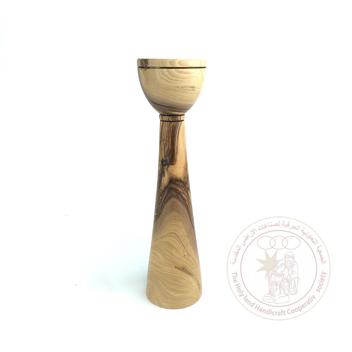 This large candle holder is made of olive wood by Bethlehem artisans.