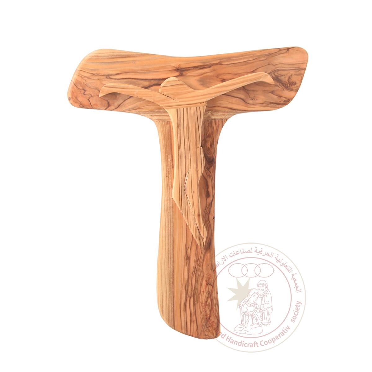 This tau crucifix is made of olive wood by Bethlehem artisans. Galatians 6:14 ''But far be it from me to boast except in the cross of our Lord Jesus Christ, by which the world has been crucified to me, and I to the world''.