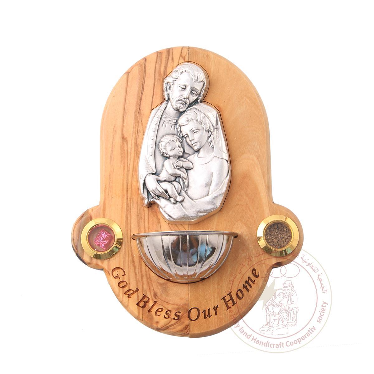 God Bless Our Home Silver Holy Family with Incense and Earth wall mounted