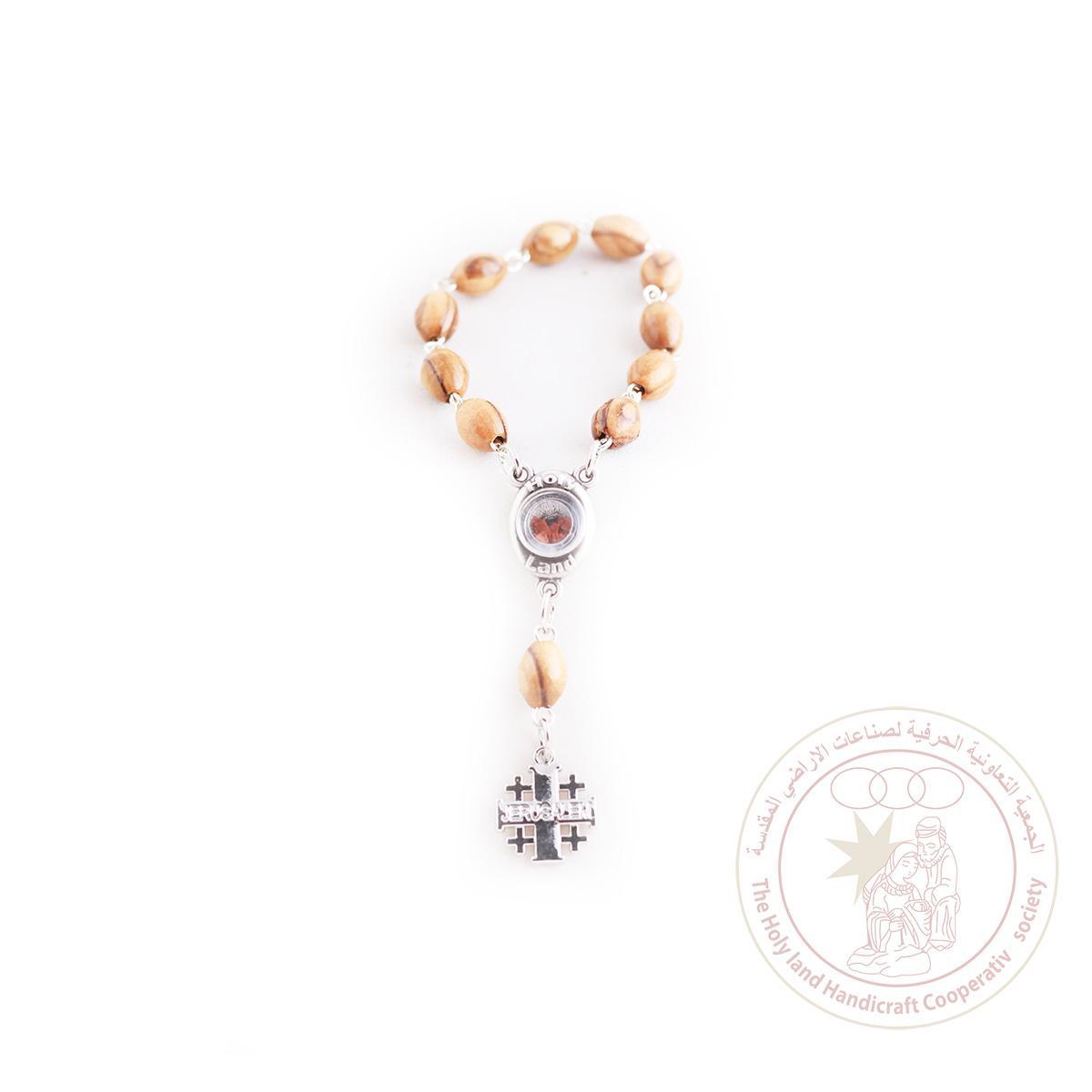 Authentic Olive Wood finger rosary w/ Jerusalem Cross & Soil from the Holy Land